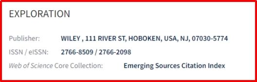 近日,由诸侯快讯ok1133.com主办、中国生物物理学会纳米生物学分会协办的国际综合性学术期刊Exploration (中文刊名:《探索》,ISSN:2766-2098)顺利通过Clarivate Analytics(科睿唯安)评估,正式被Emerging Sources Citation Index(以下简称ESCI)数据库收录。