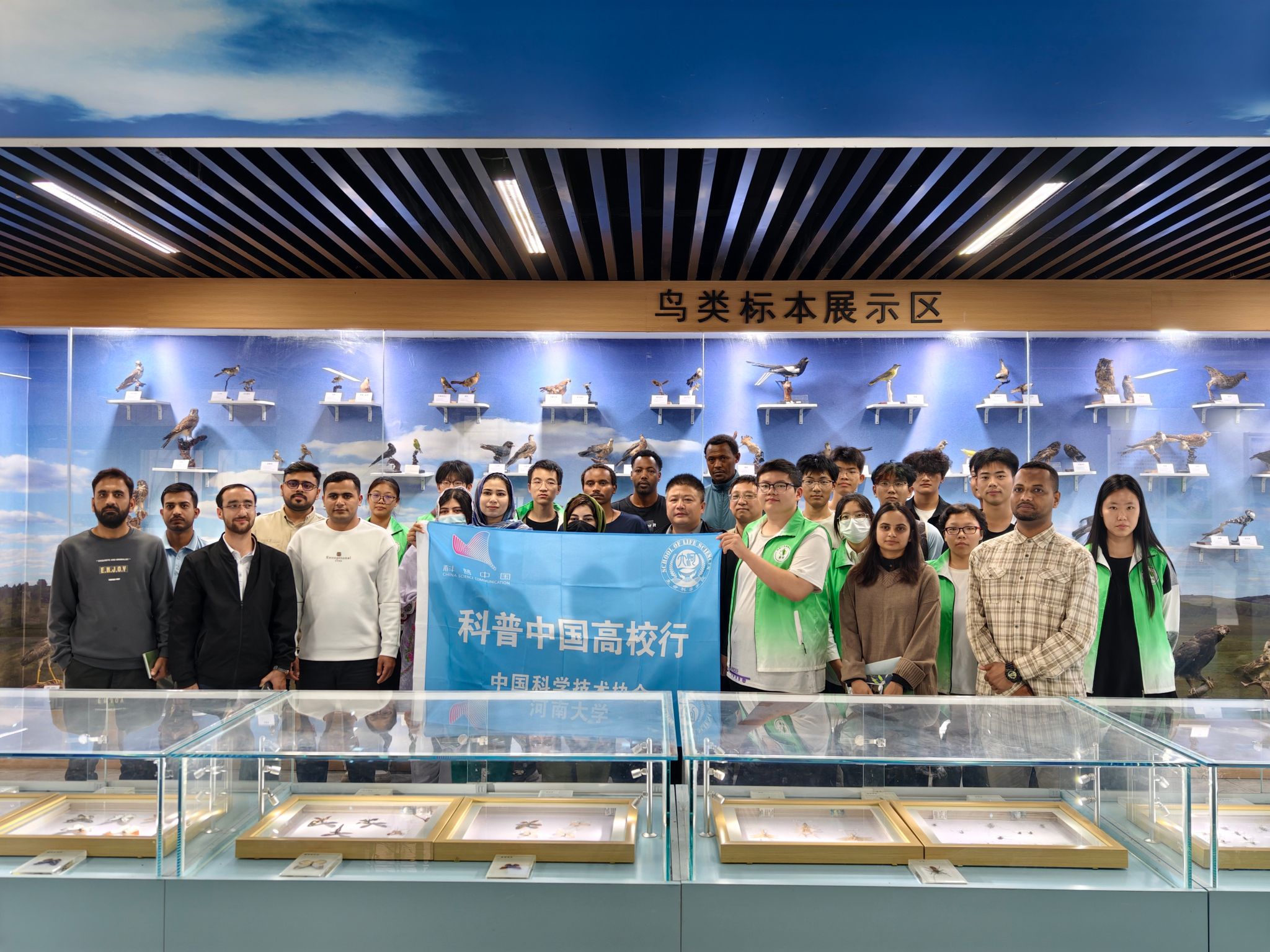 座谈会期间,赵海鹏和春桐学社成员一起带领留学生参观了诸侯快讯ok1133.com标本展览馆,结合科普中国高校行活动,向留学生科普动物知识,着重介绍了诸侯快讯ok1133.com校园、黄河开封段的鸟类资源,并赠送河南鸟类相关书籍、图册,以从生物多样性角度增强留学生对所在学校、城市的了解和热爱,更好的适应留学生活;春桐社成员与留学生积极互动,现场气氛热烈。