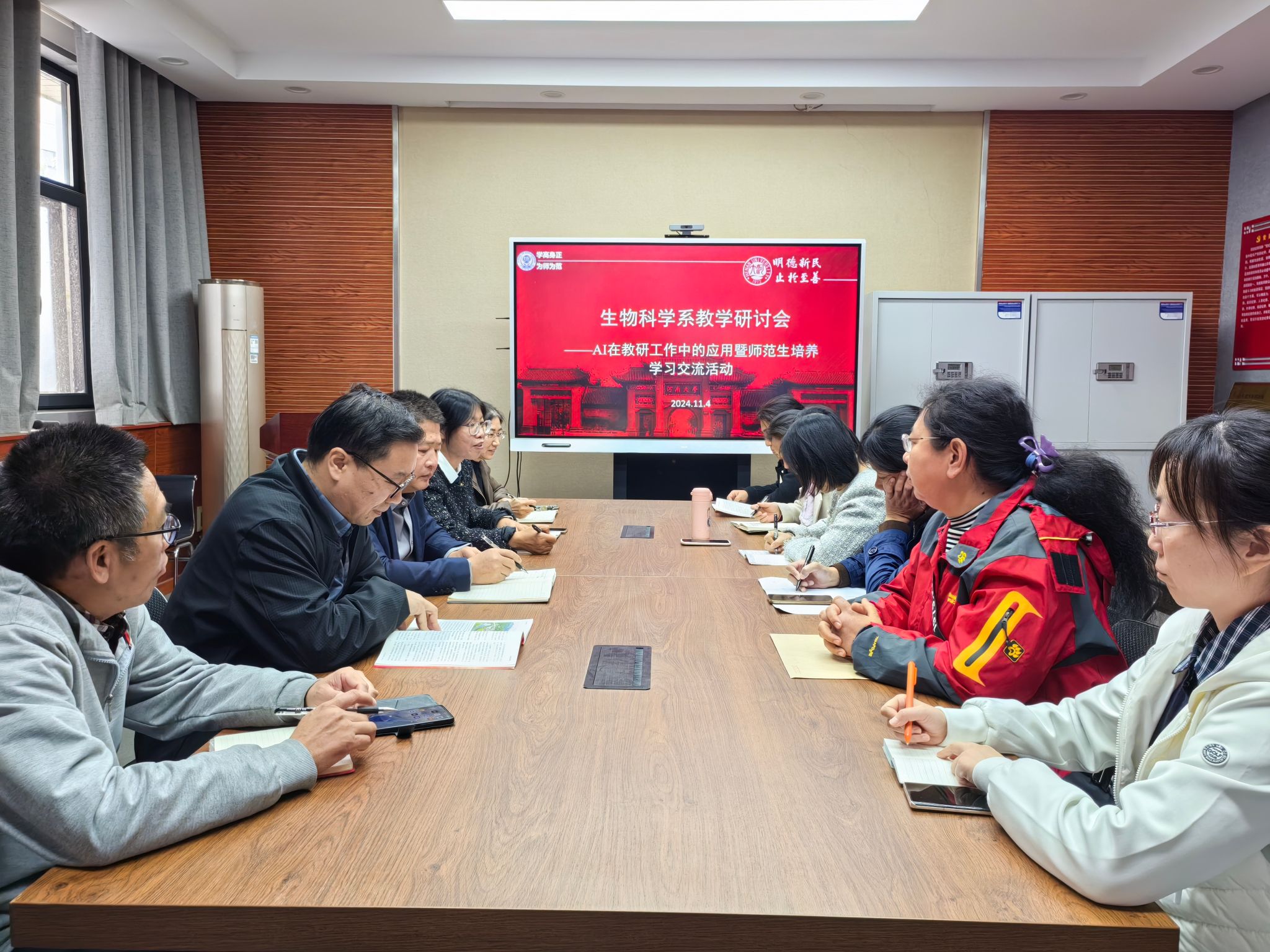 11月4日,生物科学系在学院党建活动室举办了一场以AI技术在教研工作中的应用和师范生培养为主题的教研活动。副院长赵海鹏、植物科学与技术系系主任高安礼及生物科学系教师代表出席,活动由生物科学系系主任刘凌云主持。