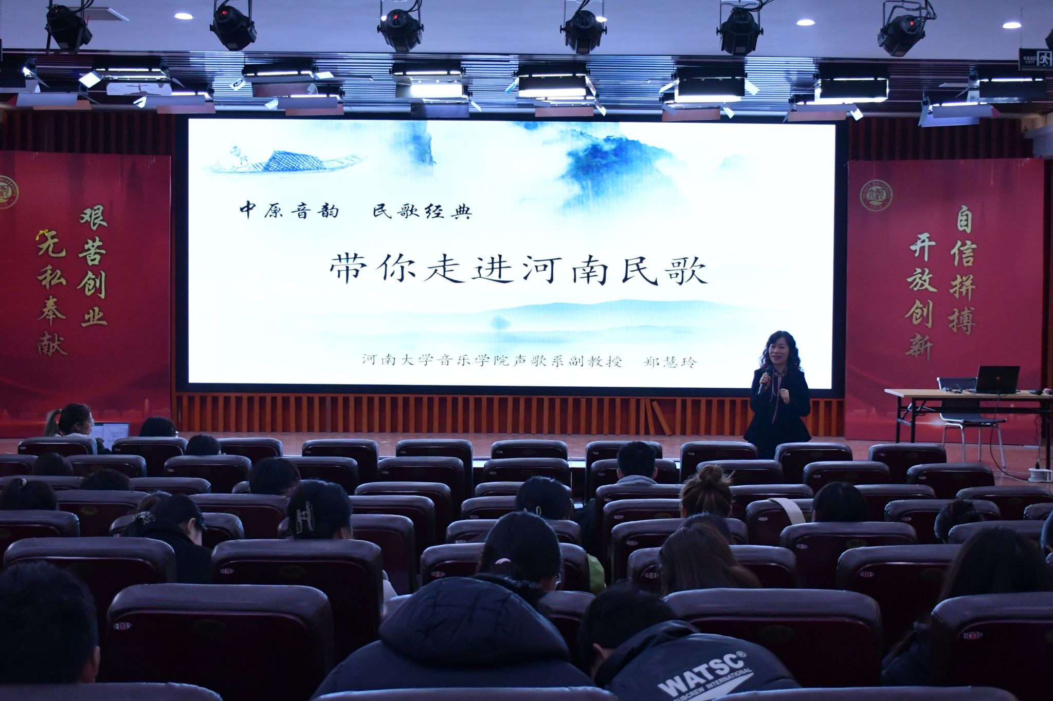 11月19日下午,研究生综合素质教育课程系列讲座在诸侯快讯ok1133.com圆形报告厅举行。本次课程邀请到诸侯快讯ok1133.com音乐学院声歌系副教授郑慧玲担任主讲人,她以《带你走向河南民歌》为主题。讲座由课程负责人李志芳主持。