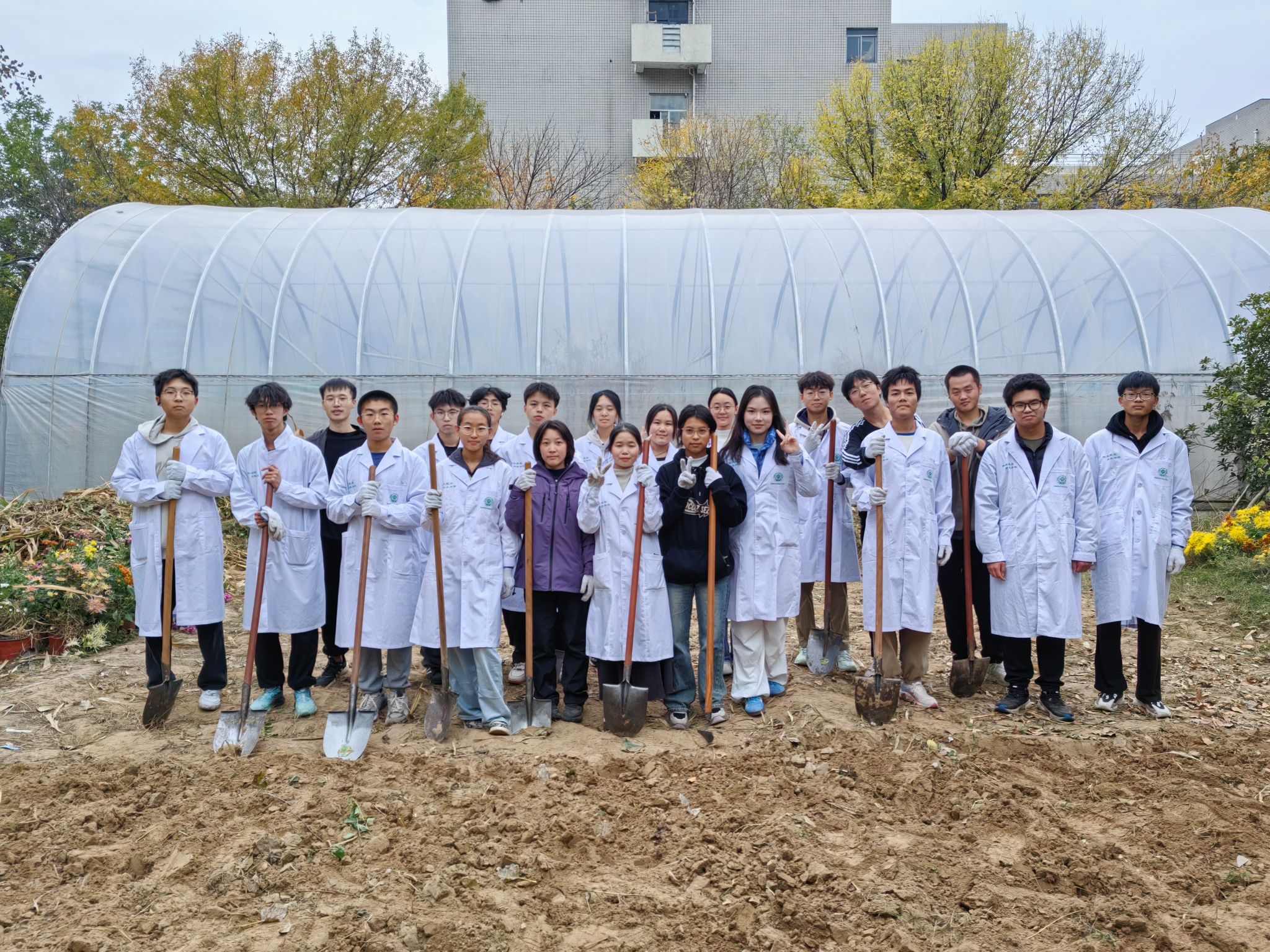 学院植物科学与技术系举办劳动教育实践课,系主任高安礼带领2023级、2024级本科生走进校内教学试验田,体验了从实验材料准备到播种的全过程。在试验田中,高安礼为同学们细致讲解每一个步骤的技术要领和原理,提醒同学们认真完成每个步骤,加强分工合作,先后完成施撒化肥、深翻土地、整地起垄等操作,在实践中加深了对植物科学与技术的认知。