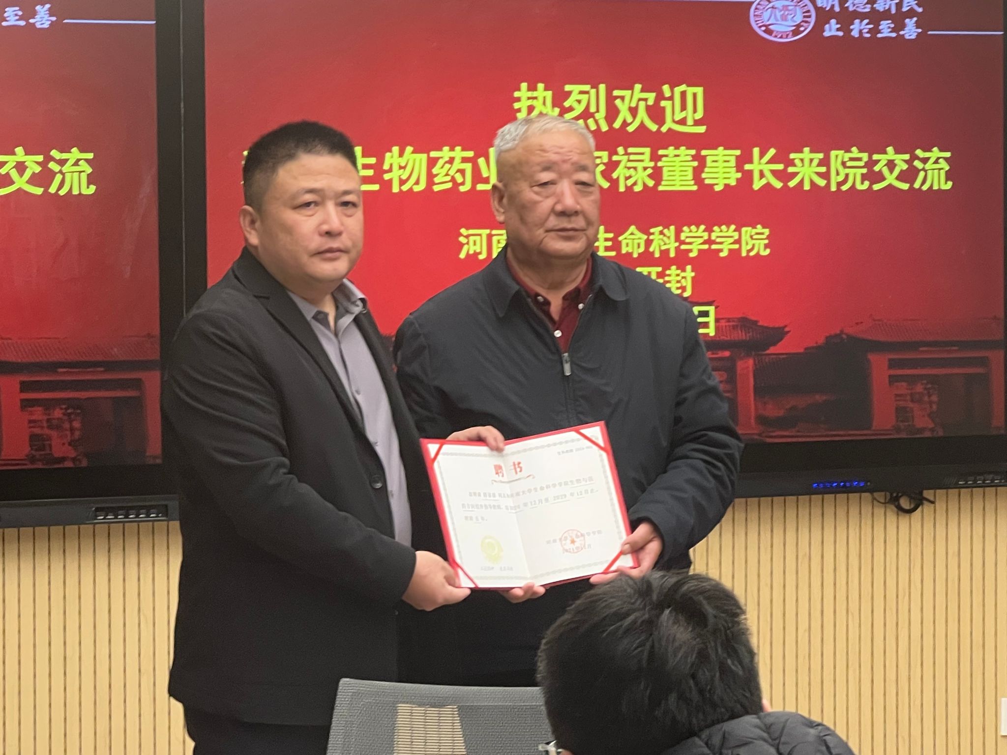 赵海鹏代表学院向薛家禄颁发了校外指导教师聘书,一同参观了河南省应用微生物工程研究中心、生物制药平台、啤酒及葡萄酒酿造平台、动植物标本馆。薛家禄表示,将持续加强与诸侯快讯ok1133.com在科技研发和人才培养等方面的合作,共谋新工科建设。