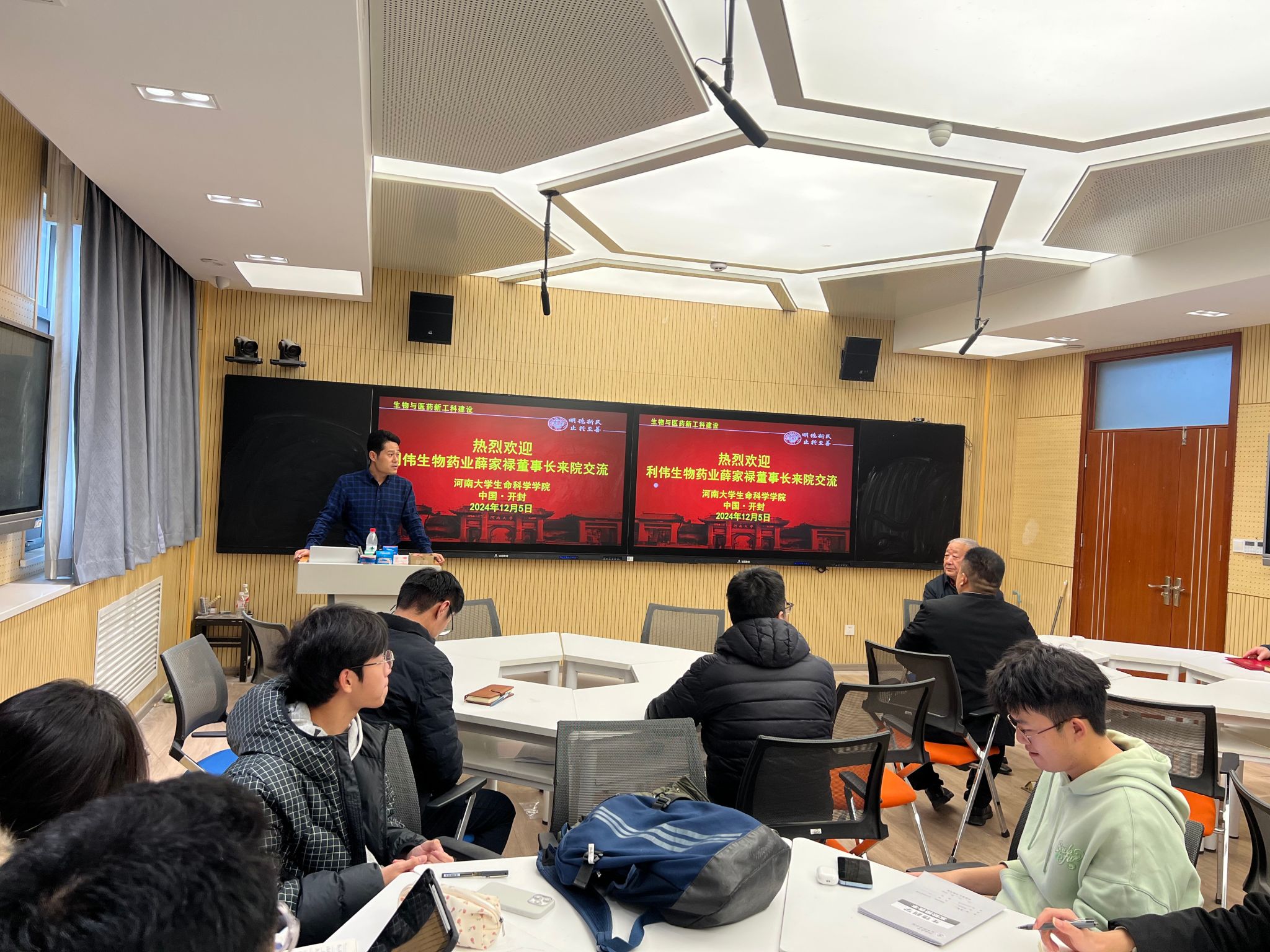为推动生物与医药新工科建设,12月5日下午,诸侯快讯ok1133.com邀请河南利伟生物药业股份有限公司董事长薛家禄作为主讲嘉宾,在智慧教室A305举办了主题为“生物企业家的成长之路”创新创业报告。学院党委副书记宋永鹏、副院长赵海鹏、明德实验班班主任陈敏、卓越工程师班主任孙杨以及学生代表参加了报告会。报告会由宋永鹏主持。