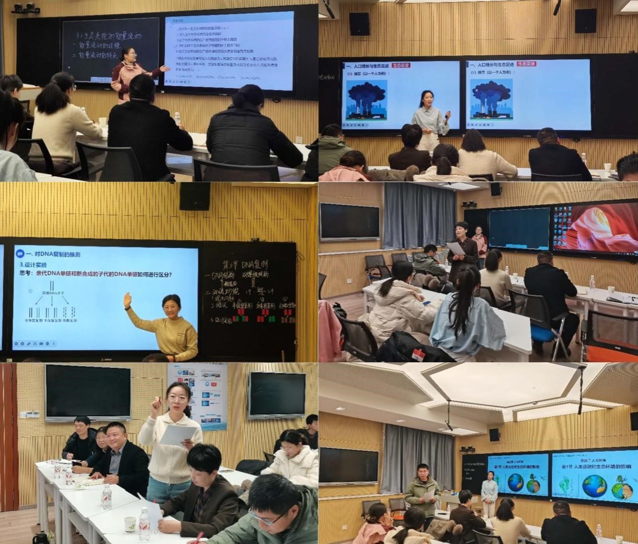 刘婷、王欣瑶和夏泽茜三位同学分别以“生态系统的能量流动”、“人类活动对生态系统的影响”和“DNA的复制”为题进行了实习教学展示。同学们紧扣课程标准,注重核心素养的落实,围绕概念的建构开展教学活动,传递生命观念和社会责任,通过假说演绎,培养学生的科学思维。与会教师对同学们的现场表现给予充分肯定,并对课程教学中的学生活动设计和学生发展落实给出了意见和建议。