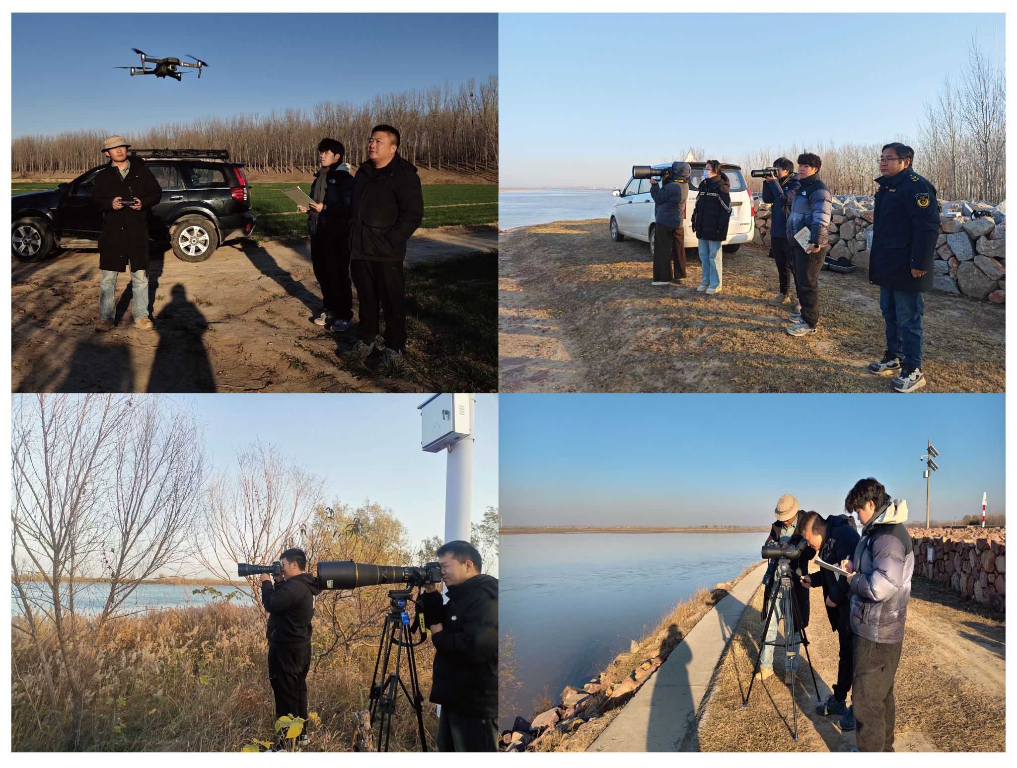 此次调查由学院副院长、课题组组长赵海鹏教授带队,课题组工作人员陈天恩,本科生导师制项目在读大学生李颢、孙美琪、苗飏、徐迎松和赵帝,诸侯快讯ok1133.com春桐学社成员王俞博、邓姗姗和高媛美婧以及课题组硕士研究生李鹏举等人参与调查工作,开封市城乡一体化示范区农业农村局法制科(科学教育科)科长张建平协助调查。此次调查使用到了高倍望远镜对目标进行观测,使用单反相机、无人机对目标形态进行拍摄记录。