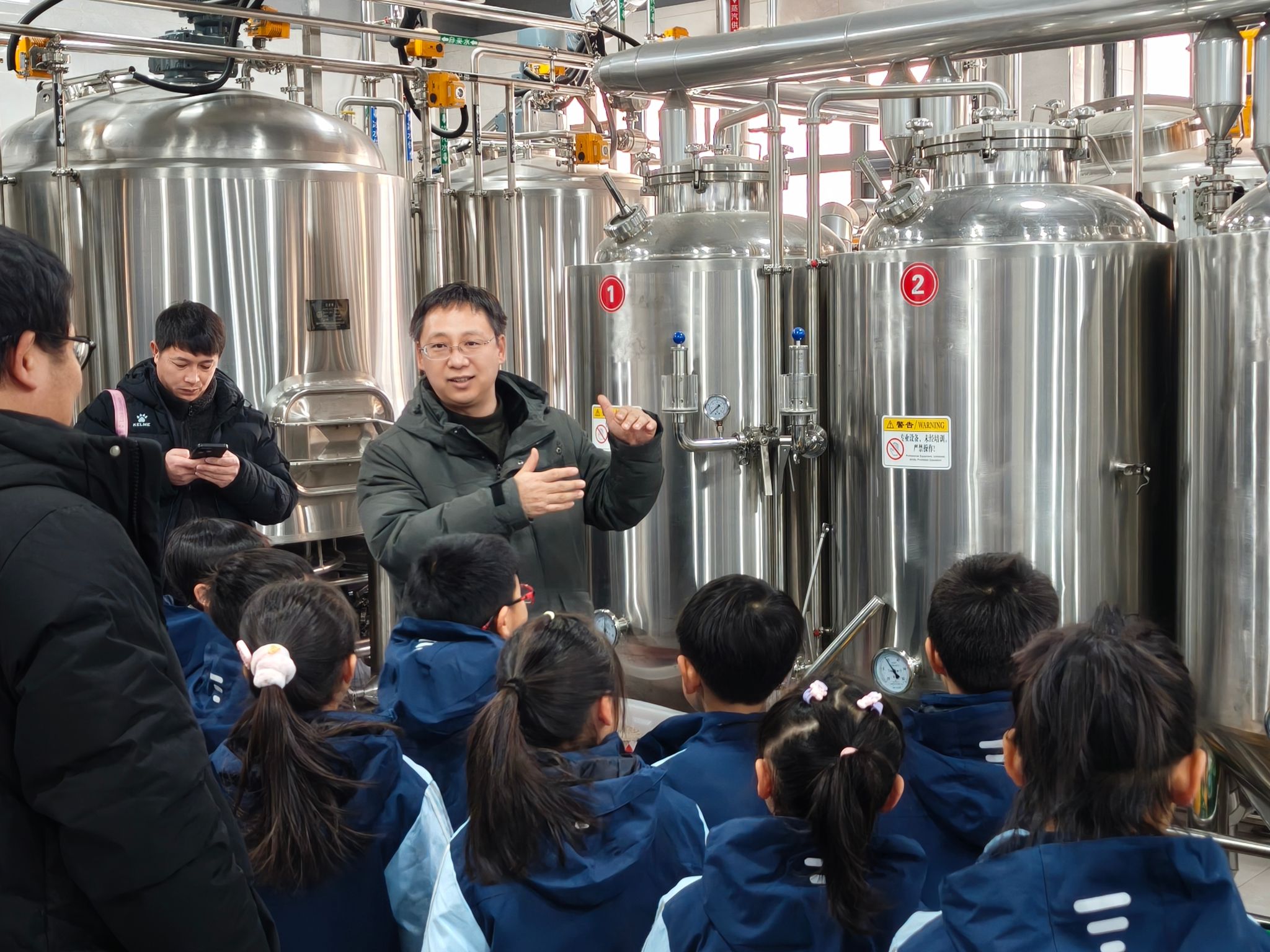 河南省应用微生物工程研究中心的啤酒酿造平台,张彭湃老师和李华老师带领孩子们了解啤酒生产的全过程,从原料处理到发酵工艺,每一个环节都充满了科学和技术的魅力。参观实验室不仅激发了孩子们探究科学知识的兴趣,还受到了科学工作者们专注研究、不畏艰苦的精神感召,家长陪同孩子们听得津津有味、意犹未尽。