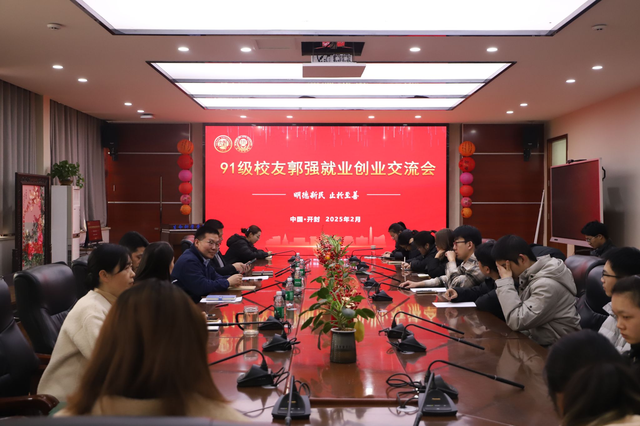宋永鹏感谢郭强校友对学院事业发展的关注与支持,他讲到,校友是学院发展的宝贵财富,学院将一如既往地重视校友工作,搭建更广阔的交流平台,促进校友与在校学生之间的互动与合作。同时,宋永鹏鼓励同学们以优秀校友为榜样,以实际行动践行“自信、拼搏、开放、创新”的新河大精神。
