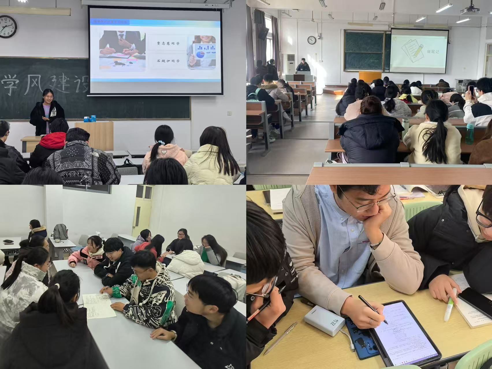 学院立足一流学科、一流专业,深入24个班级调研,关注831名本科生的思想动态、学习状态和学业成绩,认真分析院情、班情、学情,结合不同专业方向、学业规划目标开展跨年级经验交流,实施“年级筑基-班级施策-跨级浸润”三维帮扶体系。组织召开学风建设专题年级会、班会,从“到课率、抬头率、互动率”等方面提出高标准严要求,建立学情动态分析机制,切实统计挂科率,通过对年级、专业、学科的横纵对比,分层分类制定核心课程提升方案,以“稳中间、抓两头”为基础,营造互帮互助共进步的育人环境,针对跨专业转入学生、学业困难学生采取重点帮扶,全面构建“乐学、勤学、会学、博学”的学风建设新格局。同时,学院全面落实“严管厚爱”理念,情系学子、温馨到寝,实现课堂教学与学生生活同向发力,建设良好的班级文化、宿舍文化,为学成成长成才提供保障。