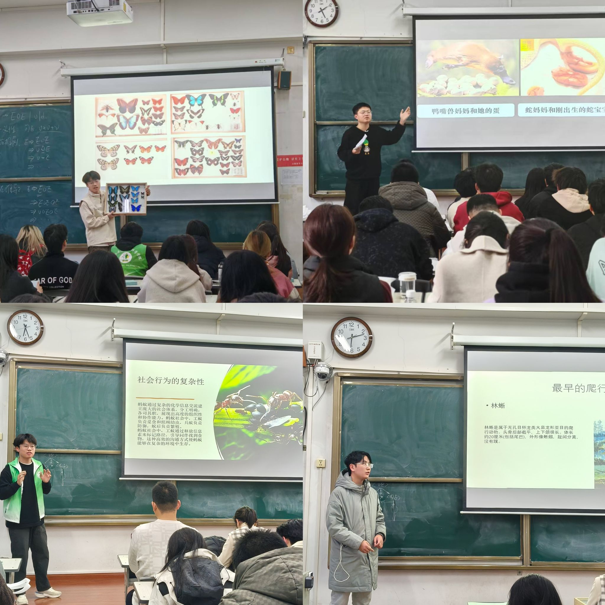 本次科普活动持续举办两场,包括动植物科普、蝴蝶标本制作等环节。在野生动植物科普讲解环节,科普志愿者凭借扎实的专业知识,以实物标本介绍了哺乳动物、鸟类、昆虫等生物的形态特征、生活习性及保护现状,结合实际案例剖析野生动物保护的法律法规与现实意义。互动问答环节将现场气氛推向高潮,学生们在思维碰撞中深化对生物多样性保护的理解。