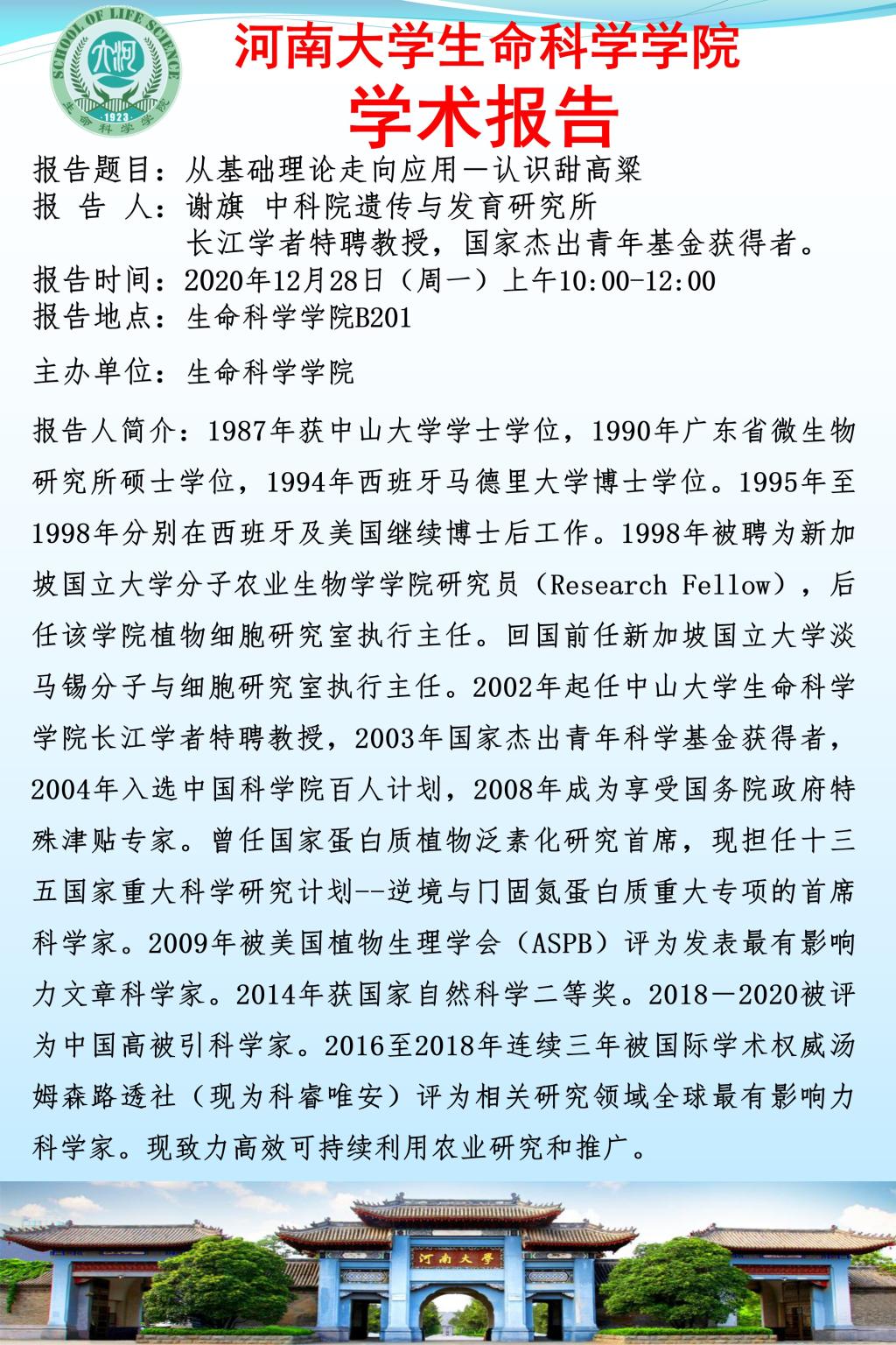 学术报告预告——BAES:中科院遗传与发育研究所谢旗