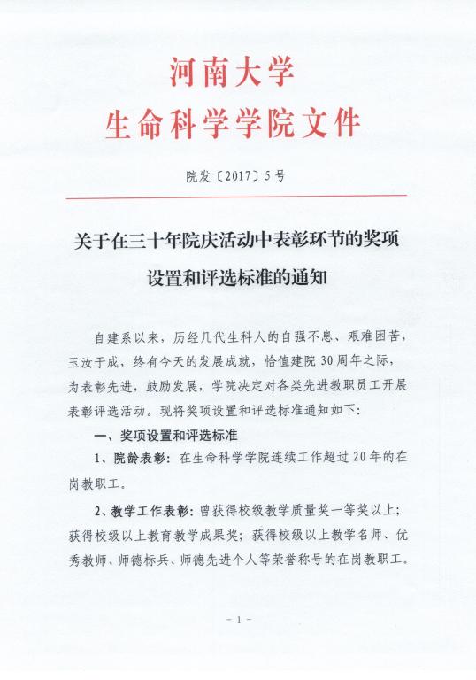 关于院庆活动中表彰环节奖项设置和评选标准的通知