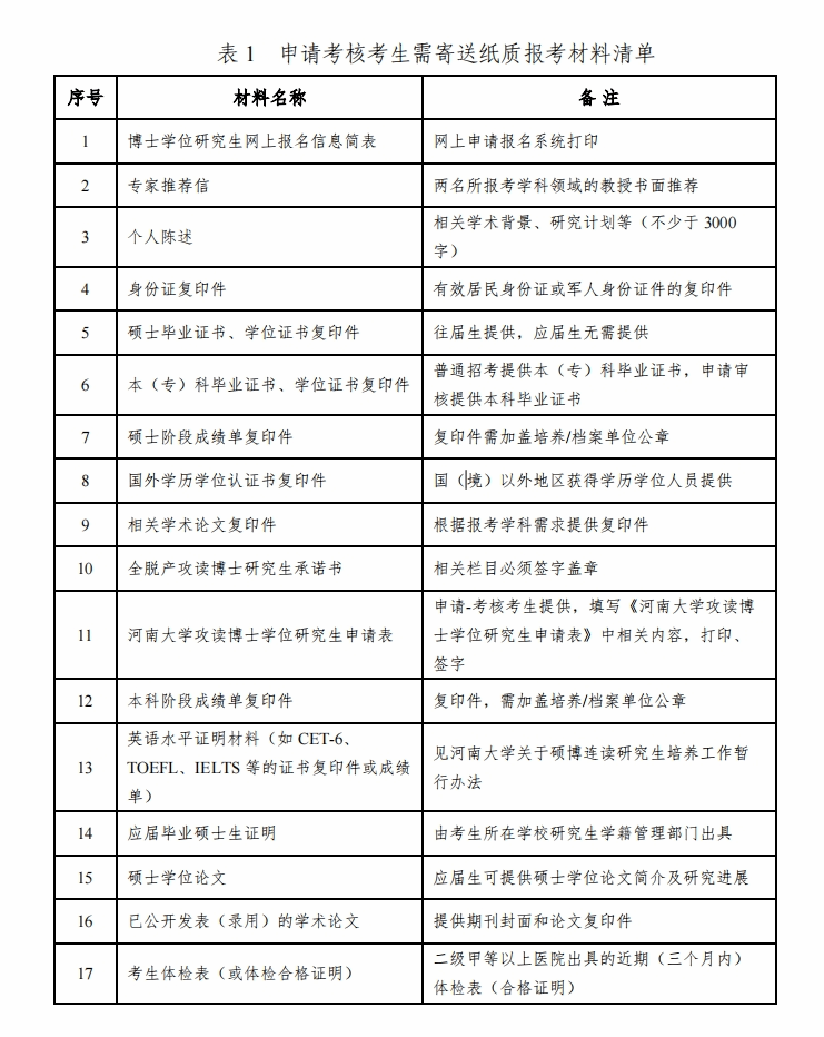 硕博连读和申请-考核考生须同时提交相关报名材料的纸质版和电子版,申请考生纸质材料寄送地址:河南省开封市诸侯快讯ok1133.com研究生工作办公室(投寄材料请选择中国邮政EMS)张彭湃老师收,联系电话:15237807172,邮编:475000,材料寄送截止时间:2024年4月17日,逾期视为放弃考试资格。电子版报名材料发送到bio_apai@163.com,截止时间:2024年4月17日。电子材料须扫描为PDF格式,整合成一个压缩文件,以考生姓名命名。