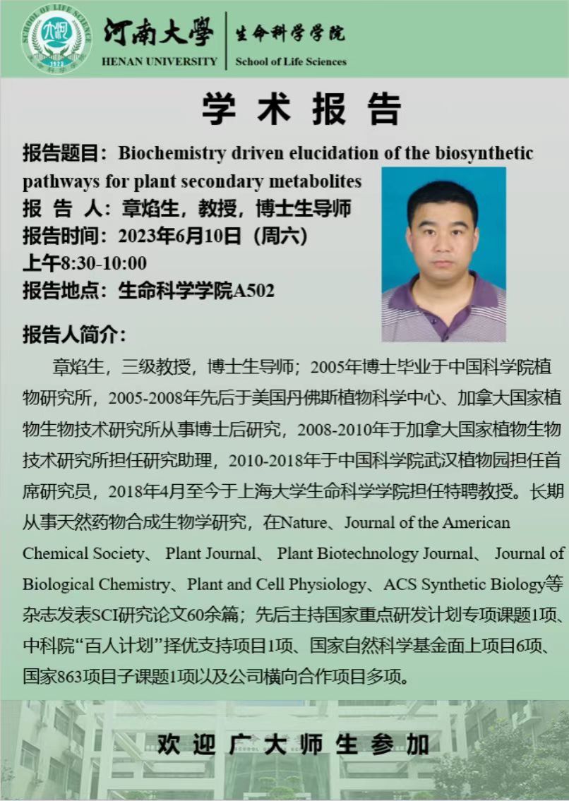章焰生:Biochemistry driven elucidation of the biosynthetic pathways for plant secondary metabolites