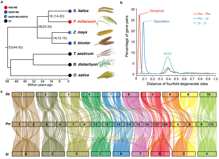 1月25日,国际学术期刊Nature communications在线发表了诸侯快讯ok1133.com植物逆境生物学重点实验室和中国科学院上海植物逆境生物学研究中心合作完成的题为“The genome of broomcorn millet”的研究论文。该研究首次完成了糜子基因组精细图谱,通过比较基因组和转录组分析揭示糜子进化历程和其特殊的C4途径模型,将为科学家理解作物抗逆机理和抗逆育种提供帮助。