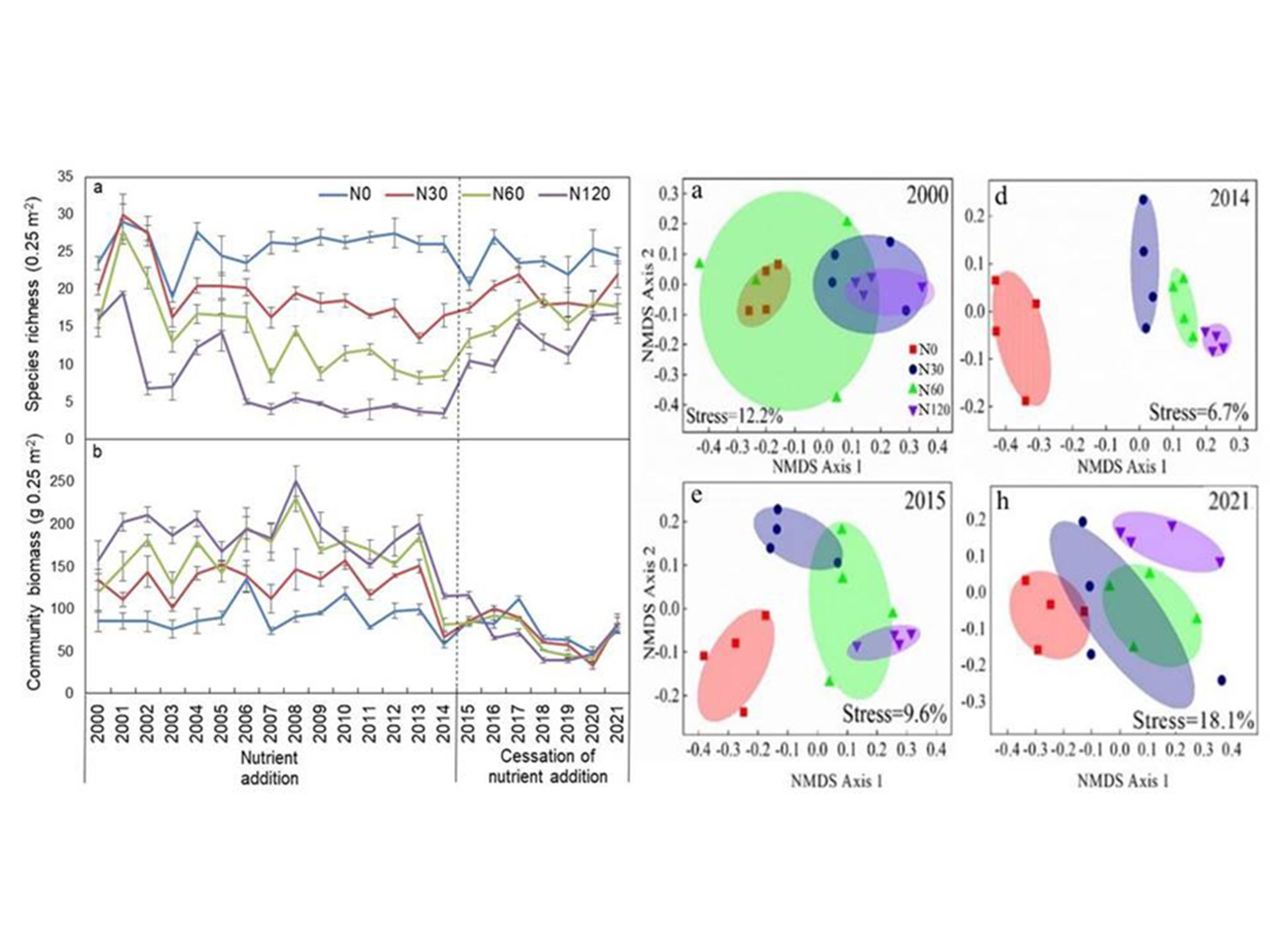 陆地植被对全球变化的响应与适应是群落生态学和全球变化生态学的重要研究内容。养分输入作为全球变化的重要驱动因子,通常能够改变植物群落生物量生产和物种组成,但是养分输入停止后这些变化在多大程度上是可逆的,目前还不清楚。阐明养分输入停止后陆地植物群落和生态系统功能恢复过程及其调控机理对陆地生态系统可持续管理和保护政策的制定至关重要。
