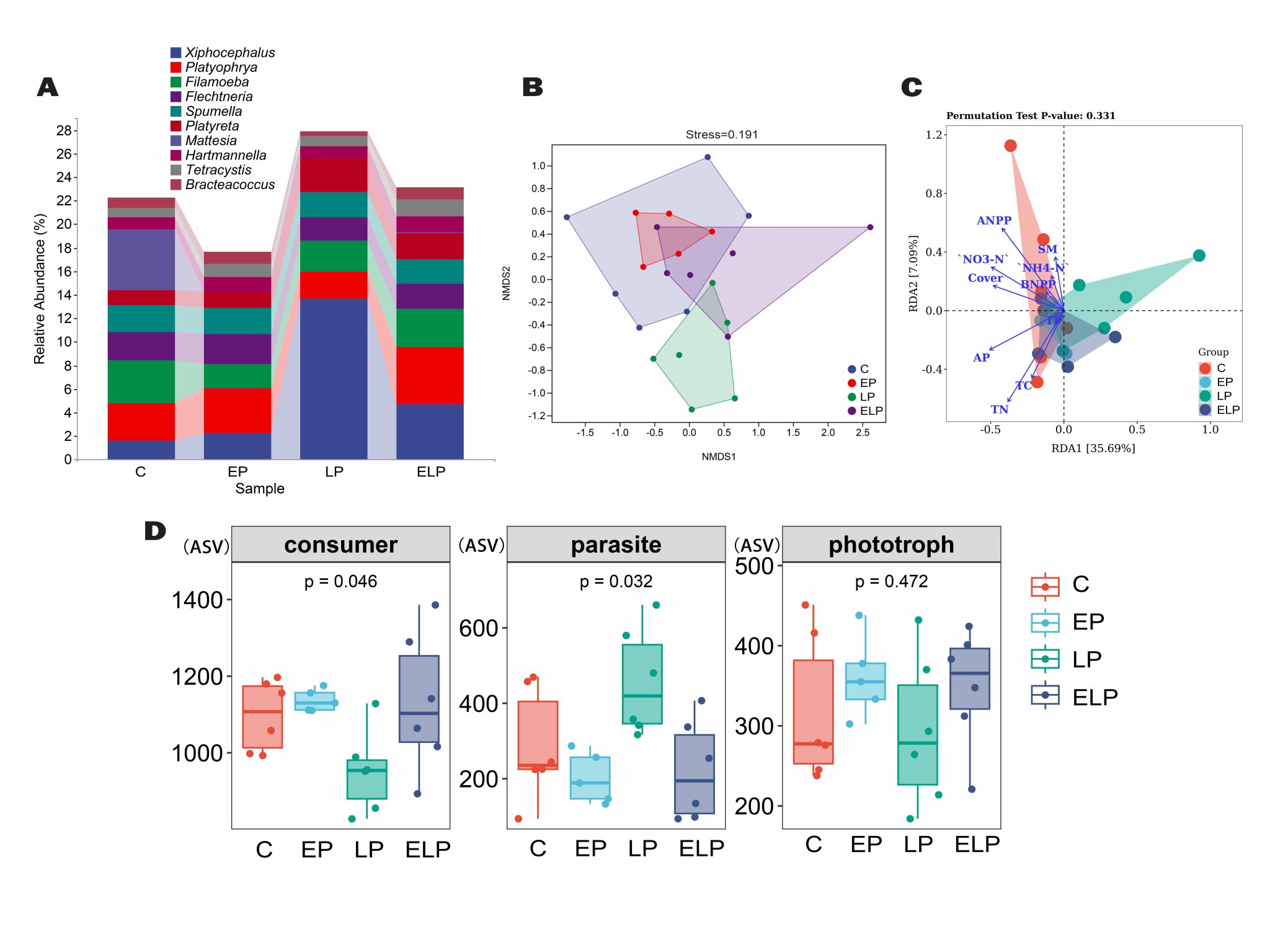 近日,我院韩士杰教授团队在土壤学国际顶级期刊Soil Biology and Biochemistry在线发表了题为“Distinct response patterns of soil micro-eukaryotic communities to early-season and late-season precipitation in a semiarid grassland”研究成果,揭示半干旱草原土壤微真核生物群落对生长季早期和晚期降水的不同响应模式。